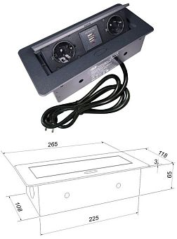 Блок розеток выдвижной круг. d60мм, 16А, 3 поста, черн., провод 1,8м с вилкой