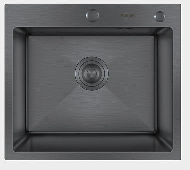 Мойка 50х45 см ГРАФИТ толщина 3,0 х 0,8/200 мм сифон с переливом + корзина