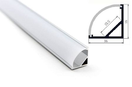Комплект алюм. профиль УГЛОВОЙ 1616 СЕРЕБР., 3м, 16х16мм, молочн. диффузор, 3+3 заглушки, 6 клипс