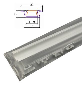 Комплект алюм. профиль ВСТР. 2207 СЕРЕБР., 2м, 22х7мм, молочн. диффузор, 2+2 заглушки