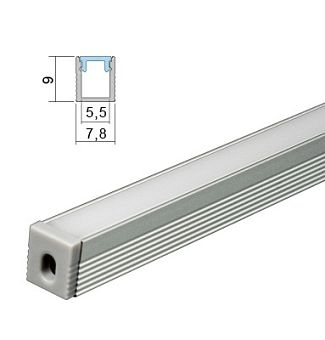 Комплект алюм. профиль ВСТР. 2207 СЕРЕБР., 3м, 22х7мм, молочн. диффузор, 3+3 заглушки