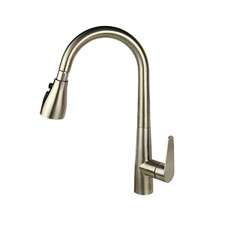 Смеситель д/кухни С - образный излив вытяжной, из нержавеющей стали SUS 304, цвет САТИН арт.13069