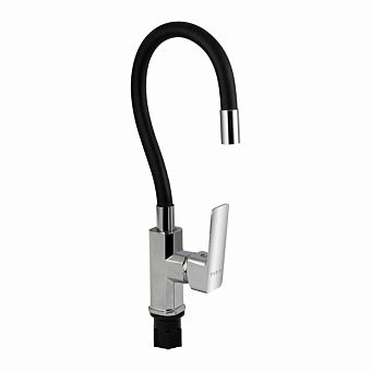 Смеситель д/кухни с гибким черным изливом FABIA корпус квадратный, цвет ХРОМ арт.9655
