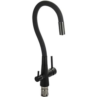Смеситель д/кухни С-обр. гибкий черный излив МАГНУС с двойным выпуском воды для фильтра,арт.91126