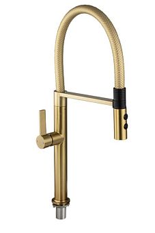Смеситель д/кухни МАГНУС рельефный изл, магнит, 2 режима, SUS 304, золото арт 91137