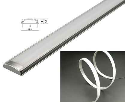 Комплект алюм. профиль НАКЛ. ГИБКИЙ 1804L СЕРЕБР., 2м, 18х4мм, молочн. диффузор, 2+2 заглушки, 4 клипсы
