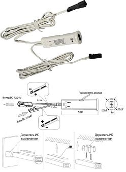 ИК-выключатель (диммер) на взмах руки SIR-5 DL 5A для профиля под пайку DC12-24В, 55х10мм