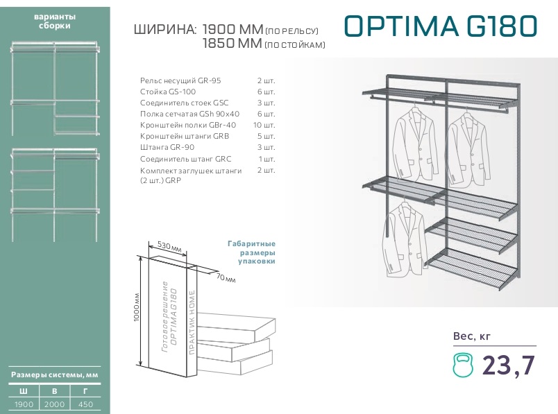- Саморезы ∅ 5х50 mm (для рельсов) –14 шт.