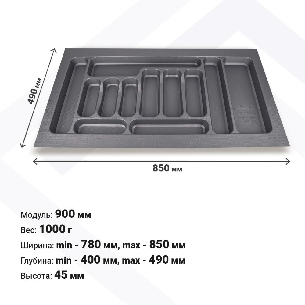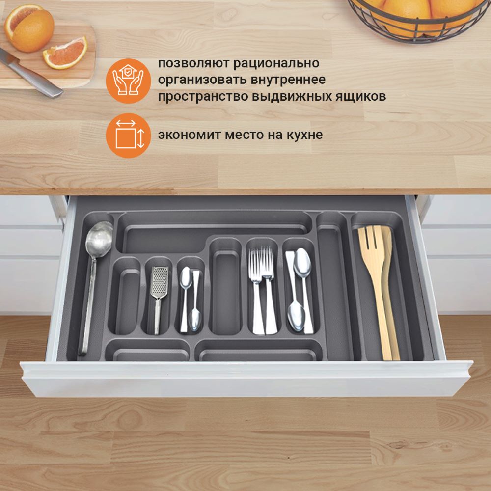Лотки для столовых приборов EVA позволяют рационально организовать внутреннее пространство выдвижных ящиков. Цвета: серый и белый глянец. Для ящиков шириной 900 мм.