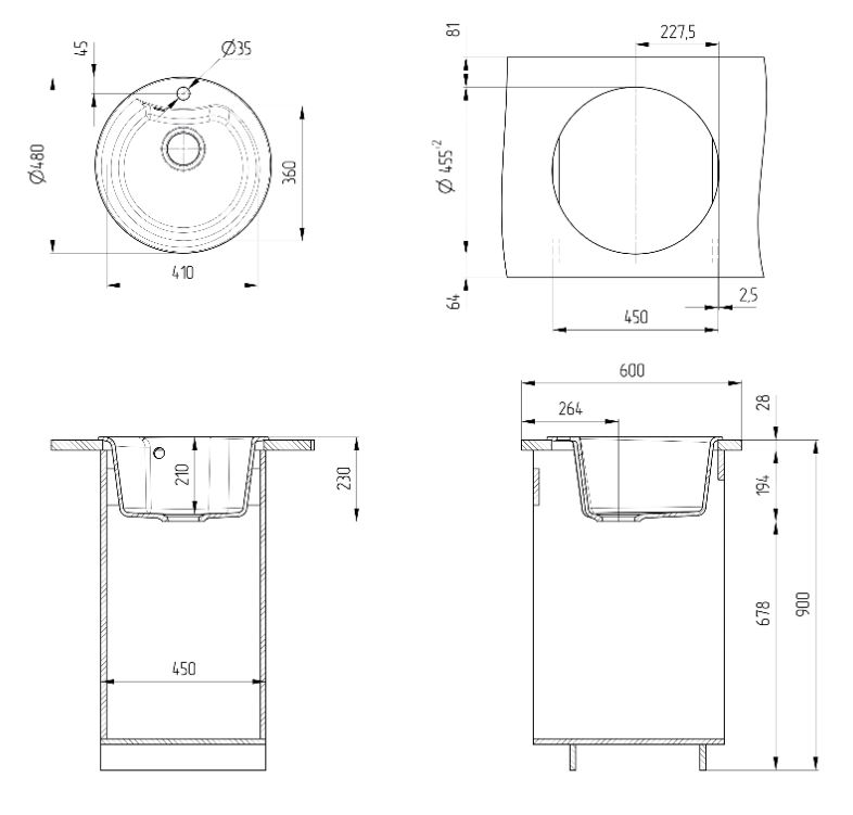 ULGRAN U-102 – классическая круглая кухонная мойка с глубокой чашей и отверстием под смеситель. Данная мойка устанавливается в шкаф шириной от 45 см и прекрасно подходит для малогабаритной кухни. В комплектацию входят: сливная арматура с гофротрубой, технический паспорт и гарантийный талон. Существует возможность установки дозатора ULGRAN справа от смесителя - доп. отверстие в таком случае потребитель делает самостоятельно с помощью фрезы Форстнера (не входит в комплектацию и приобретается отдельно). Заводская гарантия составляет 4 года, а срок службы данной мойки, при соблюдении основных правил ухода за ней, составляет более 10 лет.