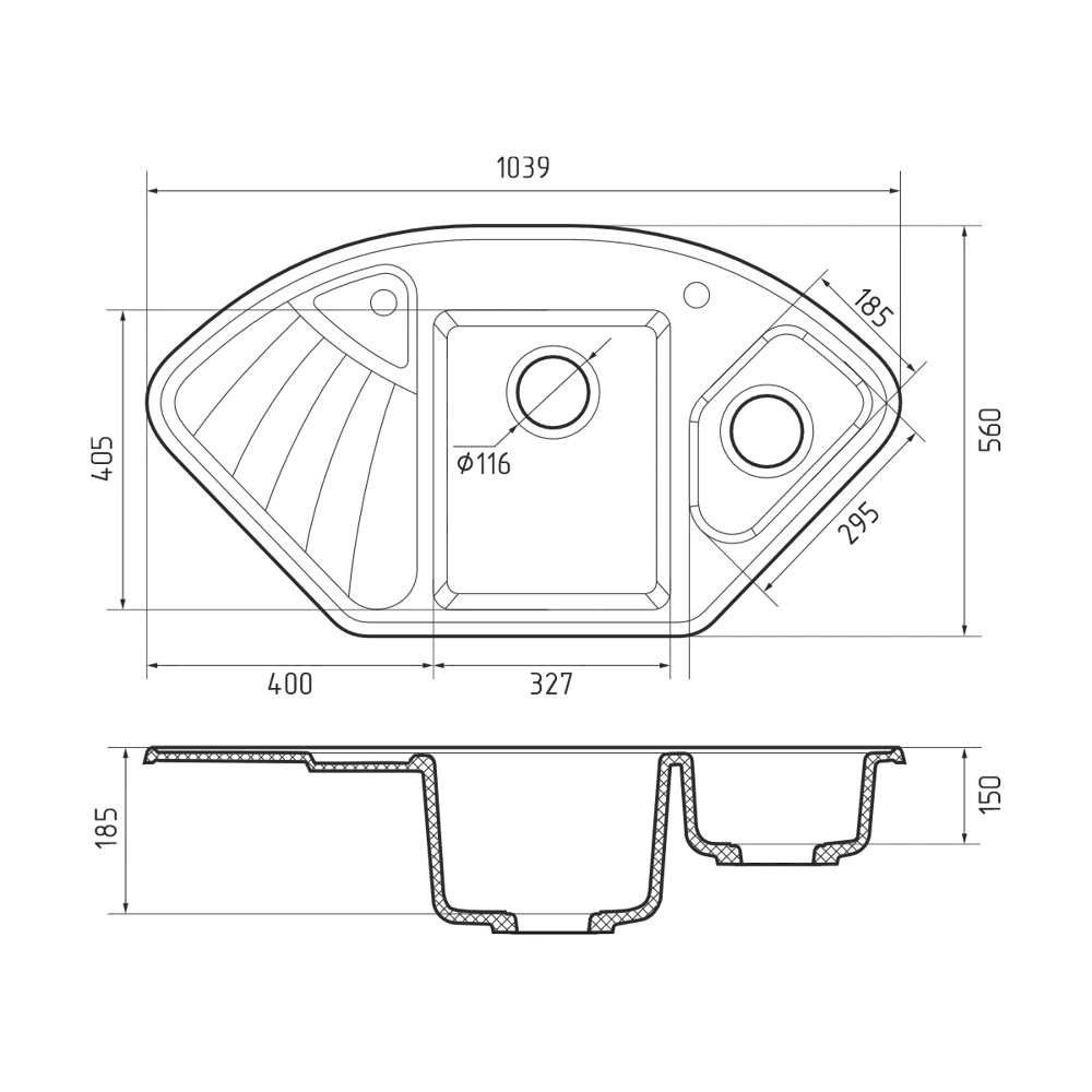 Мойка для кухни GranFest CORNER 1040E многофункциональная, угловая мойка с большой чашей, колландером и крылом, 1039*560 мм, для просторных современных кухонь. -тренд этого года, отказ от лишних деталей в пользу функциональности. Превратите свою кухонную мойку в идеально организованное рабочее пространство. Эргономичность, порядок и комфорт кухонной мойки CORNER 1040E достигаются за счет разделения кухонной мойки на две зоны: рабочую и зону подготовки. Вы можете выполнять несколько задач одновременно, мыть посуду, обрабатывать и сушить овощи, разморажить продукты. Мойки для кухни GranFest сочетают в себе высокое качество и прекрасные потребительские характеристики: ударопрочность; устойчивость к царапинам; отсутствие пористости; устойчивость к воздействию высоких температур (мойки выдерживают перепады температур от -50 до +180 °C); антибактериальные свойства (на поверхности мойки не размножаются бактерии); гидрофобность; защиту от воздействия красящих веществ.