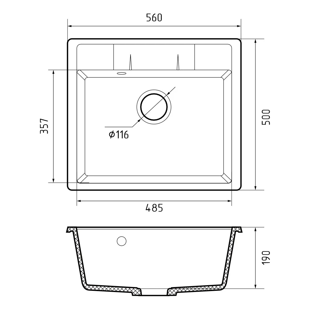 Модель кухонной мойки Q-561 отличается своей функциональность и продуманностью линий. Уже подготовлено отверстие для смесителя и Вы сможете с легкостью установить её без лишних затрат времени. Площадка под смеситель имеет скошенные внутрь лучики, вода с лёгкостью будет стекать в чашу. Радиус скругления внутренних углов чаши обеспечит лёгкий уход.