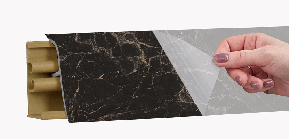 Декор на поверхности плинтуса для столешниц LB 38 покрывает и мягкие края, поэтому они становятся невидимыми, что повышает эстетику отделки.