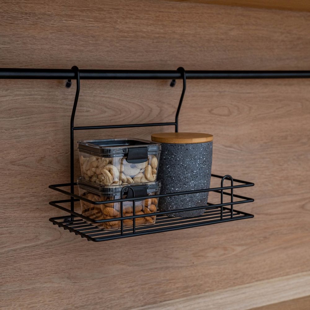 Полка позволяет эффективно использовать пространство на стене. Если повесить полку над мойкой, то на нее поместятся все моющие средства. Если разместить полку над рабочей зоной, то можно поставить на нее часто используемую технику. Например, кофемолку или миксер. Изготовлена из стали, надежно крепится на трубу рейлинга, прослужит долго.