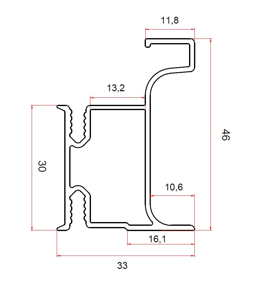 Профиль вертикальный боковой, черный анодир. с брашировкой 4700мм