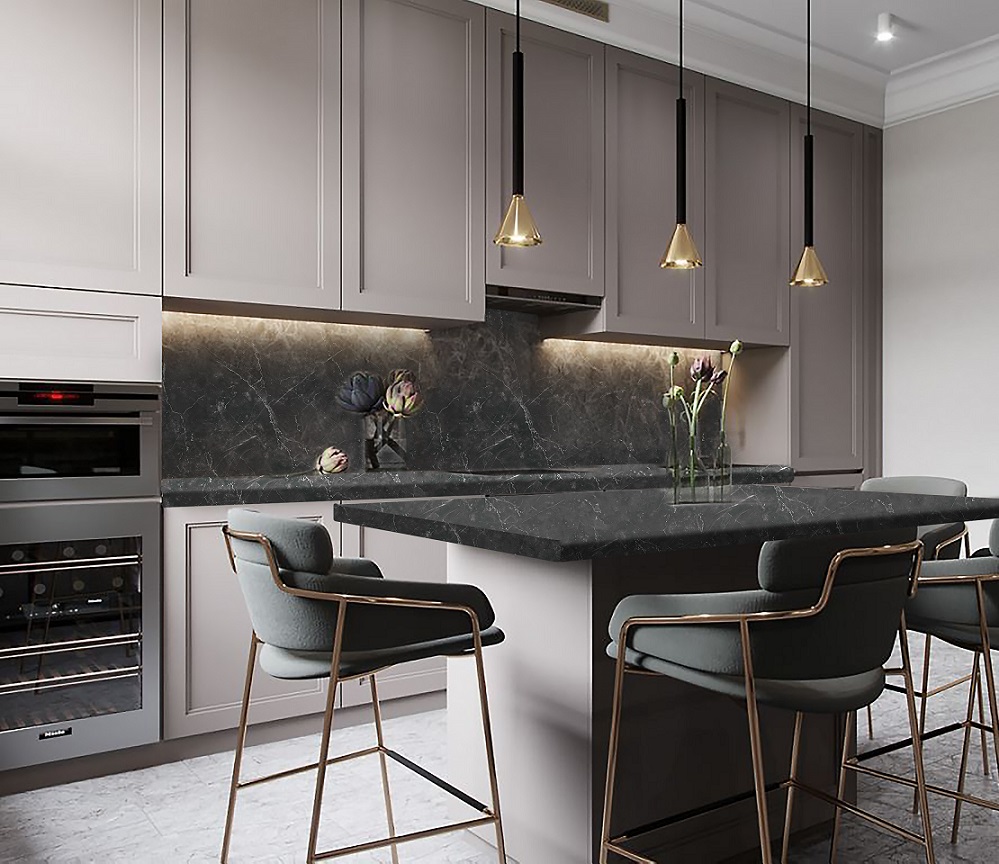 Столешница 3050x600x40 1U 3122 Даркстоун //1 обладает влагостойким слоем, который обеспечивает надежную защиту от разбухания столешницы при частом контакте с водой, благодаря качественной герметизации. Столешницы устойчивы к различным бытовым химиям, чернилам, пищевым кислотам и ультрафиолетовому излучению, что сохраняет их внешний вид и функциональность. Также они обладают высокой стойкостью к механическим повреждениям, таким как царапины и сколы и выдерживают высокие температуры без образования следов от горячей посуды.