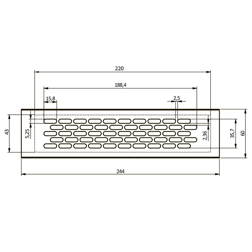 Размер отверстия монтажный 219x44мм,глубина 16 мм.